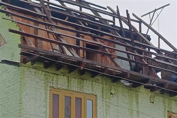 Budgam's Narkara Residents seek compensation after Gusty winds Damage House rooftops